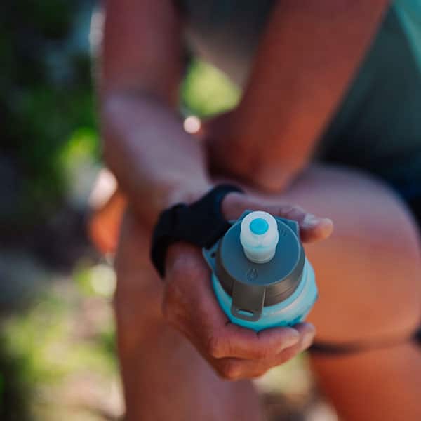 Racing or training, take matters into your own hands. This minimalist soft-flask handheld features an innovative thumb loop that allows you to hold the flask securely without wasting energy gripping or squeezing. Versatile and ambidextrous, it can be held in either hand and the soft, neoprene loop provides a comfortable and chafe-free fit. The adjustable, sweatproof strap fits most hand sizes and snuggly stays in place with a Velcro-style closure. Topped with our SpeedFill™ Cap for quick refills on the go.