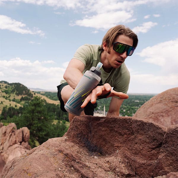 Logging miles on hot days or racing in the summer heat — staying cool is key. This minimalist handheld keeps hydration cool 38% longer than a standard flask. An innovative thumb loop allows you to hold the flask securely without gripping or squeezing. Versatile and ambidextrous, it can be fitted to either hand. The adjustable, sweatproof strap fits most hand sizes and snuggly stays in place with a Velcro-style closure. Topped with our SpeedFill™ Cap for quick refills on the go.