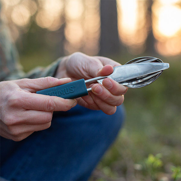 The set includes a knife, fork and spoon, all made with 18/8 stainless steel that cleans easily. Everything nests together to pack up compactly while a silicon wrap makes sure it all stays in place.