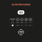 Use Glow Recharge’s cool white light when setting up camp, cooking, and organising, and switch to the warm, cosy light when relaxing, socialising, and reading. The lantern offers four brightness levels, ranging from a battery-saving 5 lumen to a powerful 350 lumen. Glow Recharge features an integrated 2050 mAh Li-Po battery with a USB-C charging port (charging cable not included).