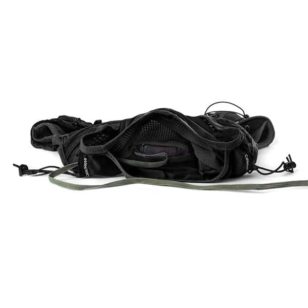 Lightweight black running vest with 10L of storage – holds everything you need for long runs or run commuting with light packing.
